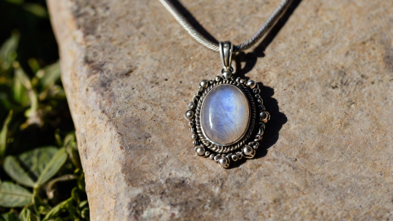 ムーンストーンはその名の通り、月のような柔らかな光を持ち、「女性性」や「直感」と深い関わりがあるとされています。女性の心と体のバランスを整え、感情の浮き沈みを和らげてくれることから、「癒しの石」として人気があります。また、恋愛運を高め、愛する人との絆を深める効果も期待されています。月の満ち欠けと共鳴しやすい石とされており、満月の夜に身につけるとより強いパワーが得られるとも言われています。